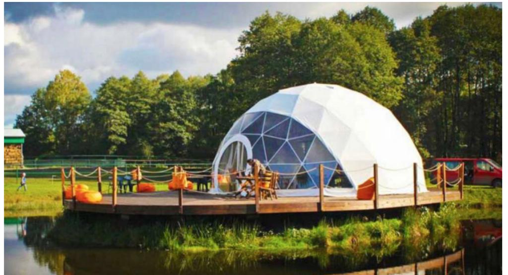 Având o suprafață interioară și o înălțime destul de mare, un cort geodezic neavand stilpi interiori sarcina fiind distribuită uniform pe contur, vă permite să plasați orice construcții sau instalații de dimensiuni mari în interiorul cortului geodezic.